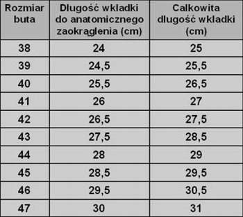 By poprawnie dobrać rozmiar, proszę o zapoznanie się z tabelą rozmiarów umieszczoną obok.