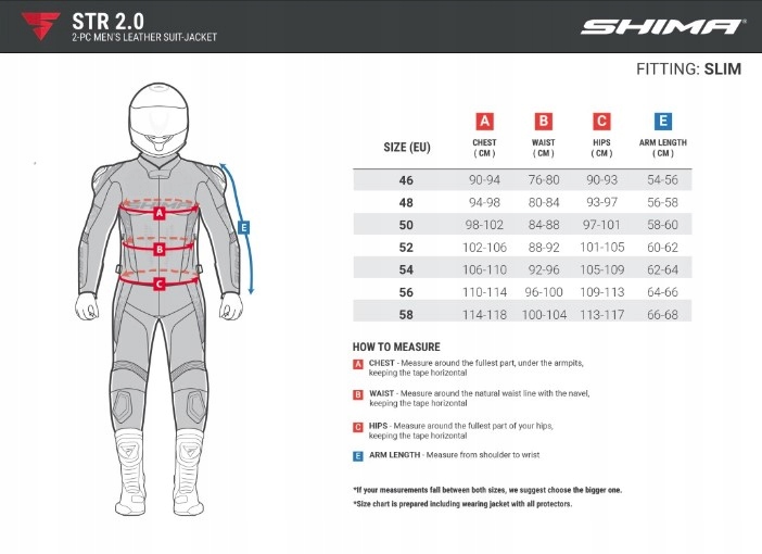 SHIMA STR 2.0 zapewnia pełną ochronę i sportowe dopasowanie dla nowoczesnych motocyklistów. Kurtka wyposażona w komplet certyfikowanych protektorów obejmujący ochraniacze ramion, łokci oraz ochraniacz pleców SHIMA ArmorPlus. Wykonana z wysokiej jakości skóry bydlęcej z DuoLayer Protection w najbardziej narażonych miejscach. STR 2.0 został zaprojektowany w oparciu o ergonomiczną, wstępnie zakrzywioną konstrukcję. Kurtka jest wyposażona w duży garb, w którym zmieści się pół litrowy HydroBag na wodę bez wpływu na jego aerodynamiczny profil. Skórzane harmonijkowe panele elastyczne wraz z obszernymi wstawkami z tkaniny stretch w kluczowych strefach zapewniają swobodę ruchów podczas jazdy i chodzenia. Dla większej wygody w kurtce są dwie kieszenie zewnętrzne i jedna wodoodporna kieszeń wewnętrzna.