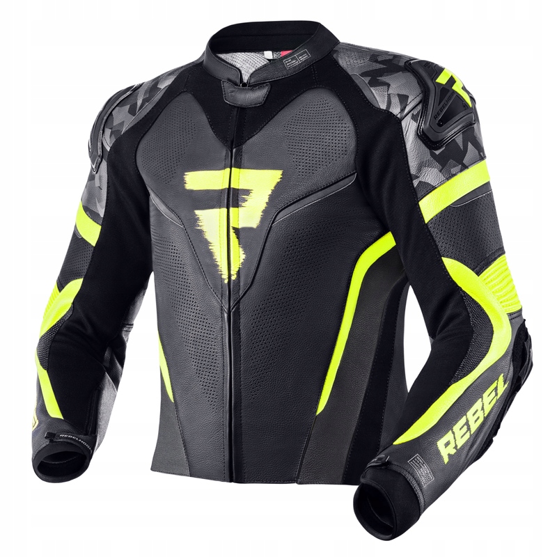 Kurtka Rebel została zaprojektowana do sportowej jazdy, dlatego zastosowano w niej materiały i rozwiązania, które służą poprawie bezpieczeństwa motocyklisty i zwiększają wytrzymałość konstrukcji.