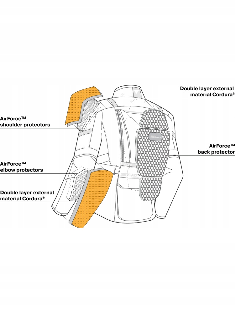 Kurtka Shima Hero 2.0 sprawia, że podróżowanie motocyklem będzie komfortowe o każdej porze roku. Została wyposażona w wypinaną podpinkę ocieplającą, która zapewnia ochronę przed zimnem. W upalne dni, ważna jest odpowiednia cyrkulacja powietrza, dlatego kurtkę motocyklową Hero 2.0 zaopatrzono w regulowane przy pomocy zamków panele wentylacyjne. Problemu nie będą stanowić także deszczowe warunki pogodowe, gdyż konstrukcję wzbogacono o oddychającą membranę NextDry. Ochraniacze barków, łokci i pleców, w kooperacji z elementami odblaskowymi, a także wzmocnieniami z odpornego na ścieranie materiału Cordura, zapewniają wysoki poziom bezpieczeństwa podczas jazdy motocyklem. Zastosowane protektory posiadają certyfikat CE, co oznacza, że zostały opracowane według europejskich norm bezpieczeństwa. Wymieniając walory modelu Hero 2.0, należy zwrócić uwagę na elastyczne panele. Ich głównym zadaniem jest maksymalizacja swobody ruchów, co przekłada się również na komfort noszenia. Kieszenie cargo, a także umieszczona w wewnętrznej części kurtki kieszeń wodoodporna, dają możliwość zabrania ze sobą najpotrzebniejszych rzeczy w podróż motocyklową. Kurtka wraz ze spodniami Shima Hero 2.0 tworzy wydajny komplet odzieży motocyklowej na każde warunki pogodowe. Oba elementy można w wygodny sposób spiąć za pomocą długiego suwaka 360 stopni.