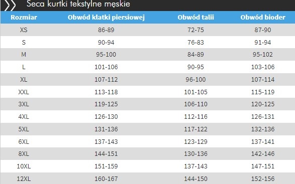 - System regulacji pasa, rękawów i mankietów