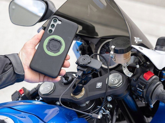 Łatwa integracja z uchwytami motocyklowymi Quad Lock lub adapterem kulowym 1″ (sprzedawane oddzielnie) oferuje wygodne zasilanie podczas jazdy. Dzięki umieszczeniu pod głowicą montażową, ładowarka eliminuje konieczność korzystania z długich kabli ładujących. Urządzenie nie pobiera prądu, gdy nie jest używane, co zapobiega rozładowaniu akumulatora. Obsługując technologię Quick Charge 2.0, zapewnia szybkie ładowanie, idealne podczas długich podróży. Co istotne, kabel dedykowany do ładowania konkretnego urządzenia nie jest dołączony do zestawu.