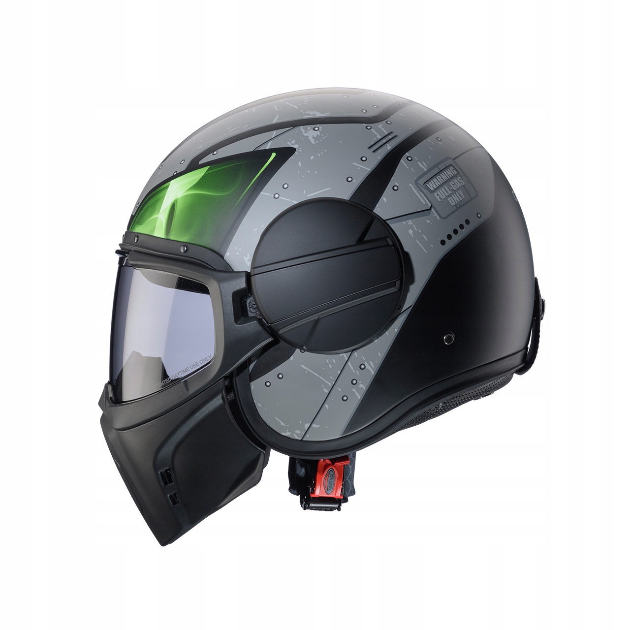 Ten modułowy kask jest wyposażony nie tylko w wizjer w kształcie gogli, który przylega do twarzy dzięki profilowi piankowemu wzdłuż wewnętrznej dolnej części wizjera, ale także w łatwą w użyciu maskę chroniącą twarz przed zimnem w miesiącach zimowych i przed połknięciem zbyt wielu komarów w okresie letnim. Dzięki sprężynowemu systemowi odchylania, otwieranie i zamykanie przyłbicy jedną ręką jest bardzo proste i intuicyjne. Ta cecha odróżnia Ghost X od innych kasków z otwartą twarzą dostępnych na rynku, wyposażonych w proste gogle, maskę i standardowe elastyczne paski.