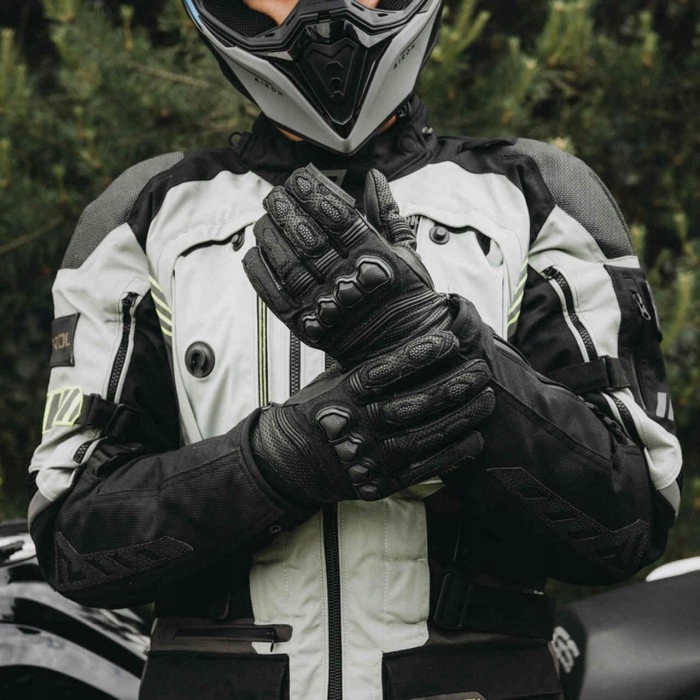 Rękawice motocyklowe skórzane typu adClimaure Rebelhorn Patrol Short wykonano z miękkiej koziej skóry i niezwykle wytrzymałego materiału Cordura. Ochronę zapewniają panele SAS-TEC oraz wzmocnienia z materiału Superfabric. Rebelhorn Patrol Short pozwalają na obsługę ekranów dotykowych. MATERIAŁ WYKONANIA