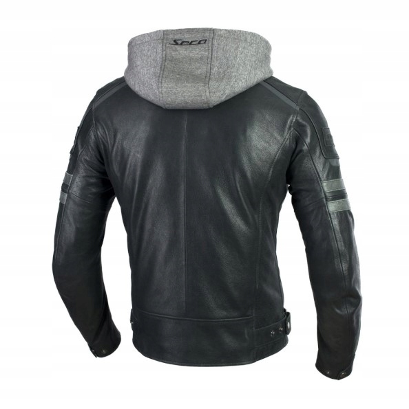 Seca Hornet II to skórzana kurtka motocyklowa w klasycznym stylu z odpinanym kapturem. Została wykonana z najwyżej jakości skóry bydlęcej ze wzmocnionymi szwami zwiększając wytrzymałość i odporność kurtki. Za bezpieczeństwo odpowiadają certyfikowane ochraniacze łokci i barków z D3O® znakomicie pochłaniające energię uderzenia a za zwiększenie komfortu odpowiada oddychająca podpinka oraz perforowana powierzchnia skóry. W zestawie do kurtki otrzymujemy pas umożliwiający spięcie kurtki ze spodniami jeans.