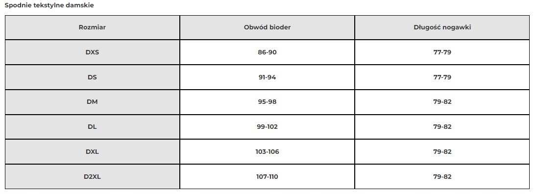 - System regulacji obwodu pasa i nogawek zapewnia możliwość maksymalnego dopasowania spodni do swojej sylwetki