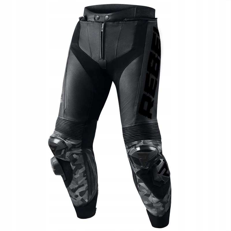 Skórzane spodnie motocyklowe Rebelhorn Rebel mają wymienne slidery kolan mocowane na rzepie Velcro, a w newralgicznych obszarach zastosowano podwójną warstwę skóry.