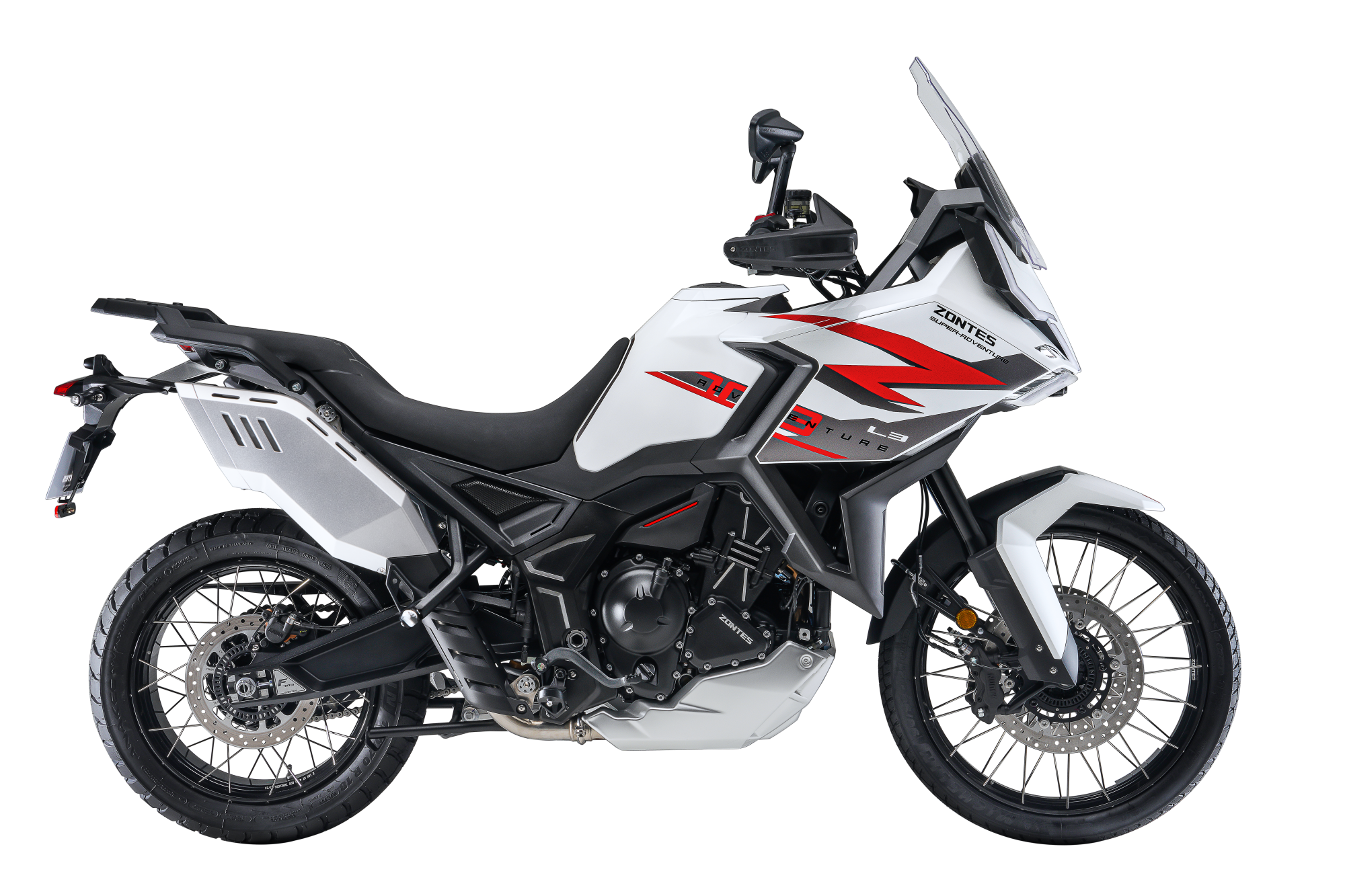 Jeśli chodzi o bezpieczeństwo i stabilność, Zontes 703 F nie uznaje kompromisów. Układ hamulcowy oparty na dwóch przednich tarczach – 310 mm i 265 mm z tyłu – gwarantuje pewność w każdej sytuacji. W połączeniu z fabrycznie montowanymi oponami Michelin motocykl zapewnia doskonałą przyczepność zarówno na asfalcie, jak i w bardziej wymagającym terenie.